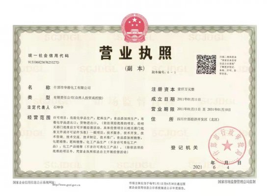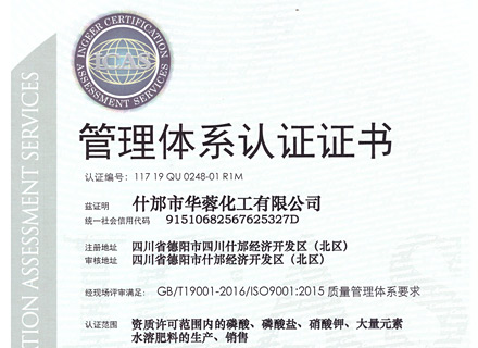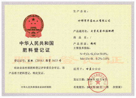 什邡市華蓉化工有限公司原名什邡華蓉科技有限責(zé)任公司,位于磷礦資源豐富的四川省什邡市,距成都60公里,交通運輸便利,是一家專業(yè)生產(chǎn)、研發(fā)精細磷化工系列產(chǎn)品的大型生產(chǎn)企業(yè)。生產(chǎn)設(shè)備先進,技術(shù)研發(fā)團隊強大,現(xiàn)公司占地面積約30000平方米,擁有5條生產(chǎn)線,主要生產(chǎn)大量元素水溶肥、磷酸二氫鉀、磷酸二氫銨、磷酸氫二銨、硝酸鉀、磷酸脲以及磷酸,年總產(chǎn)量為100000噸以上。公司資質(zhì)齊全,管理規(guī)范,已取得安全生產(chǎn)許可證、ISO9001:2015質(zhì)量管理體系認證、食品生產(chǎn)許可證、工業(yè)產(chǎn)品生產(chǎn)許可證、自營進出口經(jīng)營權(quán)進出口證書以及出口歐盟國家部分產(chǎn)品的REACH證書。